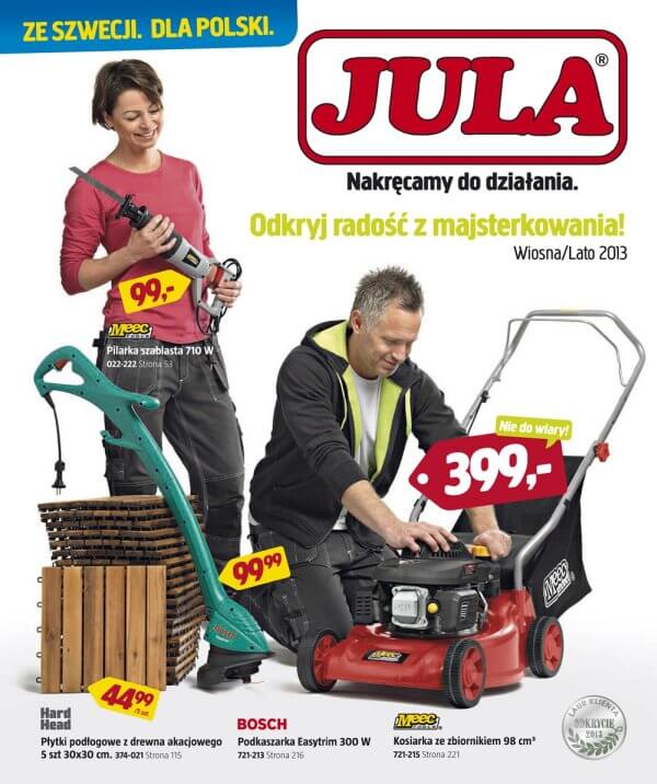 W pierwszy dzień wiosny, 21 marca w sklepach Jula na Klientów czeka nowy, bezpłatny katalog wiosna-lato 2013. Na ponad 400 stronach przedstawiona została oferta ponad 13 tysięcy produktów, w tym marek własnych niedostępnych w innych sklepach.