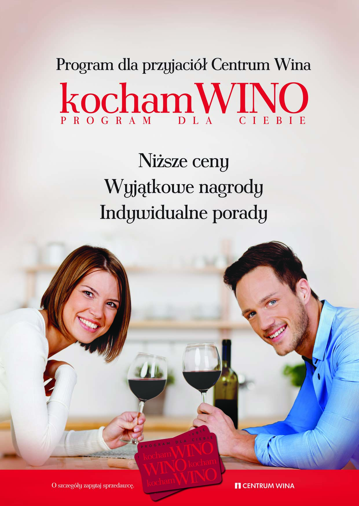 Przystępując do programu uczestnicy zyskują wiele korzyści, czekają na nich rabaty, wyjątkowe nagrody oraz indywidualne porady. Aby przystąpić do programu wystarczy zgłosić się do jednego ze sklepów Centrum Wina, wypełnić ankietę i oczekiwać na imienną kartę programu, która zostanie dostarczona do Państwa domu.