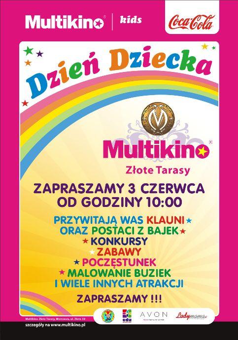3 czerwca wszystkie dzieci mogą bawić się i śmiać podczas imprezy zorganizowanej przez Multikino Złote Tarasy w Warszawie. Na ważnych, małych gości czekać będą klauni, postaci z różnych, uwielbianych przez dzieci bajek. W programie liczne konkursy, poczęstunek, zabawy, malowanie buziek i wiele innych atrakcji!
