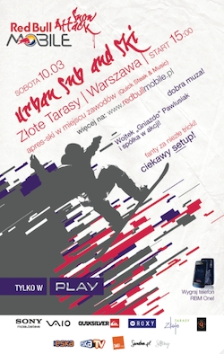 Red Bull MOBILE Snow ATTACK w Złotych Tarasach to pierwsza impreza z tego cyklu w Polsce. Organizatorzy chcą pokazać, że na desce snowboardowej czy na nartach można zaszaleć także w mieście. W ramach wydarzenia odbędą się zawody jibbowe w formie open jamu dla snowboardzistów oraz narciarzy. Na zwycięzców zmagań czekają atrakcyjne i cenne nagrody rzeczowe od Red Bull MOBILE, Quiksilver, Roxy oraz Sony VAIO.