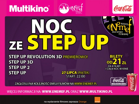 ENEMEF: Noc Step Up to propozycja nie tylko dla fanów tańca, ale także doskonałej muzyki. Taniec to marzenia. Taniec to przyjaźń. Taniec to miłość. Taniec to widowisko, zabawa i ciężka harówka. Zatańcz z nami na tym ENEMEFie!