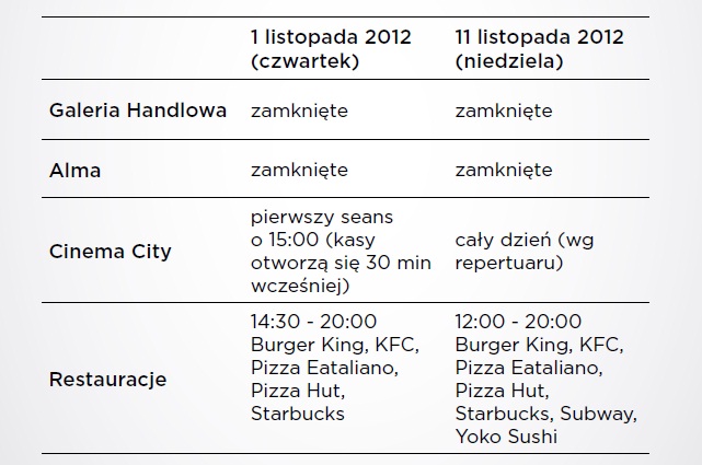Godziny Otwarcia CH Atrium Promenada w Listopadzie!
