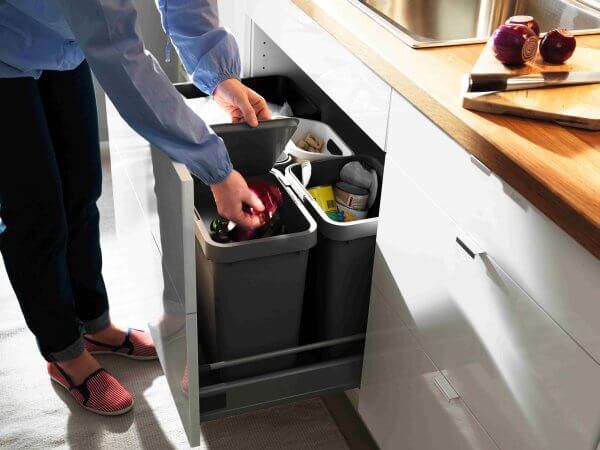 W swojej ofercie IKEA posiada szeroką gamę produktów wspierających odpowiednie sortowanie odpadów, które mogą zostać wykorzystane zarówno w domu, jak i w miejscu pracy. Wszystkie rozwiązania oferowane przez firmę pozwalają na zorganizowanie funkcjonalnej i estetycznej aranżacji pojemników w nawet najmniejszym pomieszczeniu. Najbardziej popularną serią znajdującą zastosowanie w kuchni jest RATIONELL. System składa się z różnej wielkości plastikowych pojemników, które można łatwo dopasować do ograniczonej przestrzeni pod zlewem (popularne w Polsce miejsce przechowywania śmieci) oraz wykorzystać do gromadzenia różnego rodzaju odpadów – od szkła, papieru, plastiku czy zużytych baterii, po płynne resztki żywności. Bardzo popularne są również kosze SORTERA, które można ustawiać jeden na drugim, co pozwala nie tylko zaoszczędzić miejsce, ale też stworzyć pojemny system do segregowania wielu frakcji odpadów. Dużą zaletą tych pojemników jest także praktyczna przykrywka umieszczona z boku. W małym pomieszczeniu sprawdzą się również pojemniki RETUR, które mogą być ustawiane obok siebie oraz jeden na drugim, po przytwierdzeniu do szafki kuchennej lub ściany. Z kolei zestaw toreb DIMPA może być wykorzystywany do sortowania odpadów suchych. Bardzo użyteczna jest również seria pojemników PLUGGIS, wyprodukowana z tworzywa pochodzącego z recyklingu. Dzięki ustawieniu małego pojemnika PLUGGIS (8 litrów) na dużym (14 litrów) można zaoszczędzić sporo miejsca.
