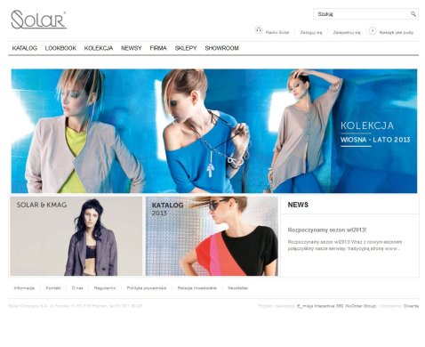 Wraz z nowym sezonem wiosna/lato 2013 Solar połączył swoje serwisy: tradycyjną stronę internetową oraz stronę sklepu on line. Od dzisiaj serwisy działają pod jednym wspólnym adresem solar-company.com.pl. Po wejściu na stronę wystarczy wybrać Kolekcję by znaleźć się w wirtualnym sklepie Solar. Wprowadzone zmiany ułatwią nawigację w serwisie i mają na celu przyczynić się do jeszcze przyjemniejszych zakupów internetowych.