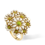 Motyw kwiatów zauroczył współczesny świat mody. Kolekcje Dolce & Gabbana, Alexandra McQueea czy Valentino emanują kolorowymi wzorami natury. Kwiaty zakwitły nie tylko na ubraniach, ale również w biżuterii. Nowa kolekcja Fiores, dostępna wyłącznie w salonach W.KRUK, to propozycja dla Pań, które poszukują nietuzinkowych wzorów z nutą romantyzmu i kobiecości. Zabawa kolorami, które przenikają przez soczyste kwiaty i czarujące motyle, to temat przewodni kolekcji. Wzory wykonane są ze złota i ozdobione ręcznie nakładaną emalią.