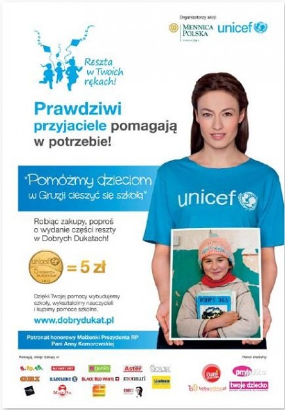 „Reszta w Twoich Rękach” to wyjątkowy program, którego idea oparta jest na specjalnie wyprodukowanym krążku monetarnym – „Dobrym Dukacie”. W czasie trwania akcji wystarczy podczas płacenia za zakupy poprosić w kasie o wydanie części lub całej reszty w „Dobrym Dukacie”. Jeden Dukat to 5 zł, a sprzedaż ich generuje dochód, który UNICEF w całości przekaże na pomoc potrzebującym dzieciom. Środki pieniężne zebrane podczas tegorocznej akcji zostaną przeznaczone dla dzieci z Gruzji. Dzięki temu UNICEF będzie miał możliwość budowy szkół, kształcenia nauczycieli oraz zakupu niezbędnych pomocy naukowych.