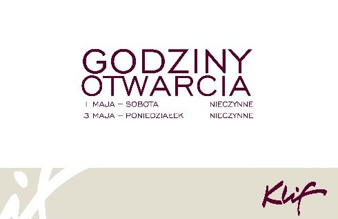 MAJOWE GODZINY OTWARCIA CENTRUM: