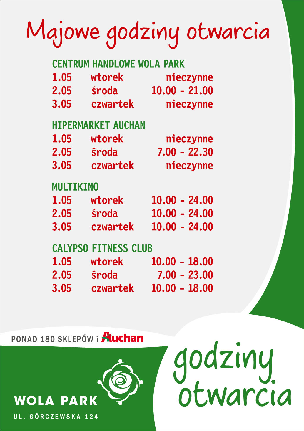 Sprawdź majowe godziny otwarcia CH Wola Park!
