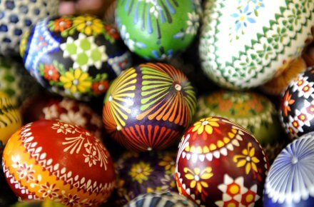 pisanki– Wycinamy różne wzory i naklejamy je na jajka. Bardzo się nam to podoba – cieszyły się uczestniczki zajęć Zosia i Pola. – Tutaj ozdabiamy pisanki, a w domu planujemy własnoręcznie zrobić palemki.