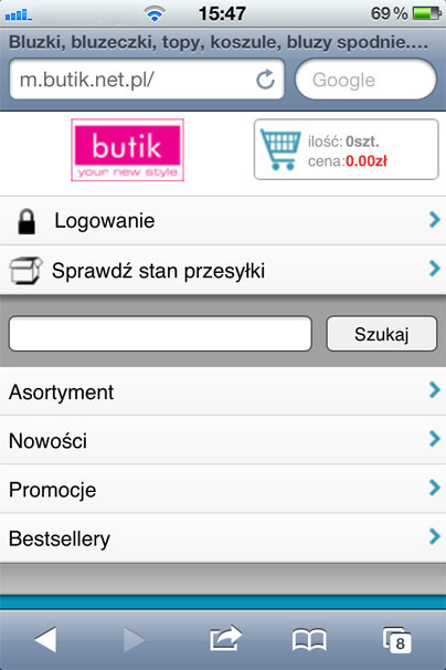 Mobilny sklep internetowy firmy odzieżowej Butik