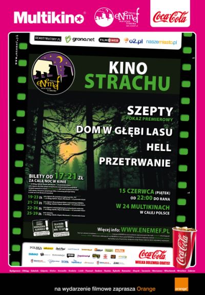 ENEMEF: Kino Strachu to propozycja dla miłośników mocnych wrażeń, którzy bardziej cenią nastrój i mroczny klimat niż efekty specjalne. Ciągłe napięcie, niepewność i tajemniczość będą głównymi wątkami tej nocy, a przerażenie i poziom adrenaliny we krwi nikomu nie pozwoli zasnąć.