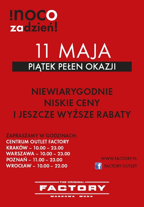 Wyżej wymienione oferty to tylko część promocji, które będą czekać na klientów Factory 11 maja!