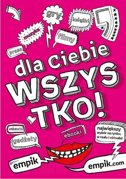 – Empik oferuje najpełniejszy i najłatwiejszy dostęp do kultury, wiedzy i rozrywki w najbardziej współczesnym i żywym wydaniu – mówi Katarzyna Skipor – Retail Marketing Manager w Empiku – Poprzez akcję „Dla Ciebie wszystko!” podkreślamy, że każdemu odbiorcy dajemy łatwy, nieograniczony, kuszący dostęp do całej sfery kultury i jesteśmy w stanie spełnić każdą kulturalną „zachciankę”.