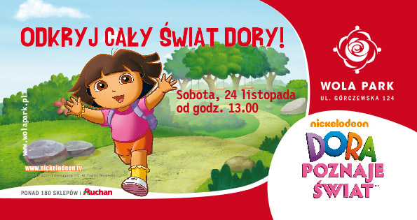 Ośmioletnia Dora to główna bohaterka popularnej serii bajek. Dziewczynka w każdym odcinku poznaje nowe miejsce, nawiązuje kolejne przyjaźnie i udziela pomocy tym, którzy jej potrzebują. Już niedługo wszystkie dzieci będą mogły poznać ją osobiście – 24 listopada, o godzinie 13, mała podróżniczka odwiedzi Wola Park!