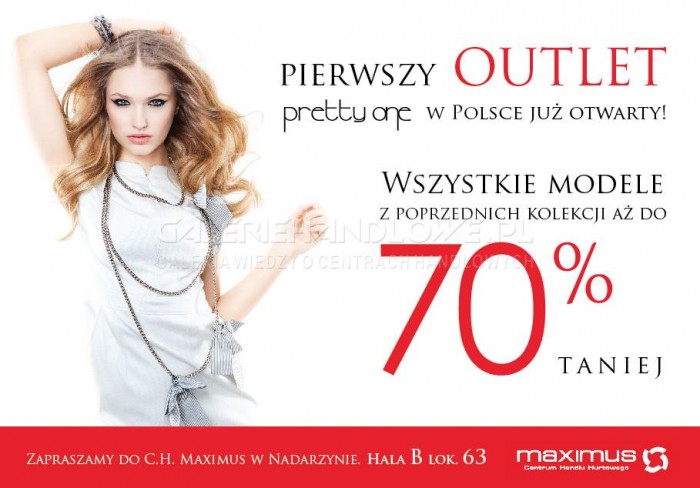 Dnia 2 kwietnia br. w Maximus Fashion Center w Nadarzynie został otwarty pierwszy outlet odzieżowej marki Pretty One. Na powierzchni nowo otwartego salonu, liczącej 70 mkw., wszystkie modele z poprzednich kolekcji można kupić aż do 70% taniej.