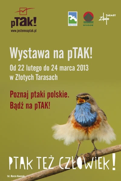 Wystawa na pTAK, będąca częścią kampanii społecznej prowadzonej przez Ministerstwo Środowiska, od 22 lutego do 14 marca gości w Złotych Tarasach. Kampania ma na celu przybliżenie Polakom informacji o ptakach zamieszkujących nasz kraj.