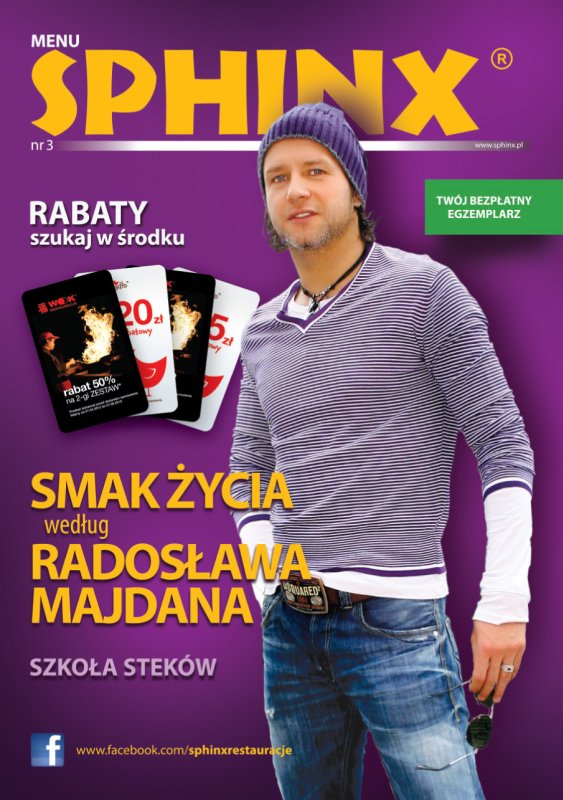 Do sieci Sphinx, zarządzanej przez Sfinks Polska, trafiła najnowsza odsłona lifestylowego Sphinx Menu. Otwiera je rozmowa z Radosławem Majdanem. Znany piłkarz i celebryta opowiada m.in. jaką kuchnię najbardziej lubi i co jest jego popisowym daniem, a także jakie są cienie i blaski życia popularnego sportowca. Nowe Sphinx Menu, które klienci mogą zabierać ze sobą, jest już dostępne we wszystkich restauracjach Sphinx, działających na terenie Polski.