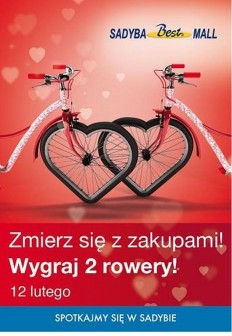 Walentynki to święto wszystkich zakochanych. To wyjątkowy dzień, kiedy składamy sobie miłosne wyznania oraz obdarowujemy siebie drobnymi prezentami i upominkami. Z tej okazji Centrum Handlowe Sadyba Best Mall organizuje konkurs, który odbędzie się w dniu 12 lutego.Impreza będzie miała miejsce w godzinach 12:00 – 18:30. Uczestniczyć w konkursie mogą osoby, które w dniu 12 lutego 2011 w Centrum Handlowym Sadyba Best Mall dokonają zakupu powyżej 100 zł. Następnie należy zarejestrować swój paragon u hostessy przy specjalnie przygotowanym w tym celu stoisku, które znajdować się będzie w centralnym punkcie galerii na parterze.Co godzinę do wygrania będą czeki na zakupy o wartości 500 zł oraz 3 czeki na zakupy do sklepów z biżuterią. Rowery dla dwojga są główną nagrodą w finale.