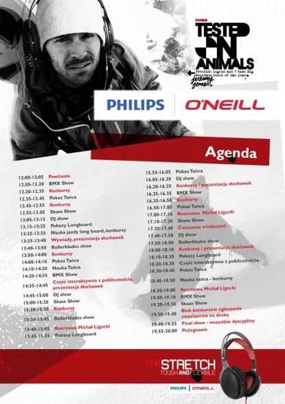 Na wszystkich gości odwiedzających tego dnia Złote Tarasy czeka niesamowita przygoda i wiele atrakcji m.in.: pokazy sportów miejskich: Skateboard, Long Board, akrobacje BMX wykonywane przez mistrzów w słuchawkach Philips O’Neill. A to dopiero początek! Odbędą się pokazy tańca nowoczesnego, Dj show a dodatkowo konkursy, w których do wygrania słuchawki Philips O’ Neill i wiele innych nagród.