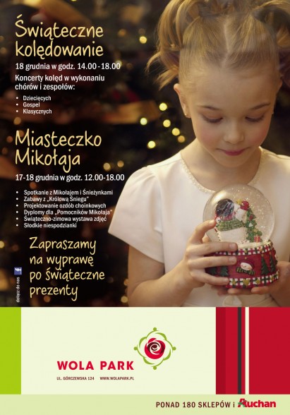 Zagości w nim Miasteczko Mikołaja, Śnieżynki, „Królowa Śniegu”. Zabrzmią kolędy, a centrum wypełni magiczna atmosfera Świąt Bożego Narodzenia. Świąteczny klimat udzieli się każdemu, kto w grudniu odwiedzi Wola Park.