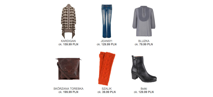 Podstawa to jeansy – najlepiej od znanych projektantów, dobrej jakości kardigan z wełny lub angory – najlepiej w modny wzór a la gruba pepitka w barwach biało-czarnych i bluzka z dobrego materiału w neutralnym kolorze.