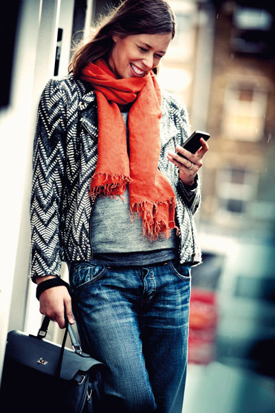 Do tego odpowiednio dobrane buty – najlepiej skórzane botki na solidnym obcasie + skórzana torebka. Do tego kolorowy akcent w postaci ciepłego szalika i przepis na jesienną stylizację miejską gotowy.