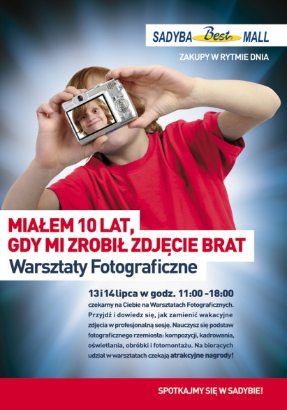 Wszystkie dzieci z rodzicami zapraszamy na warsztaty fotograficzne, które będą miały miejsce w dniach 13 lipca oraz 14 lipca w godzinach 11.00 – 18.00.