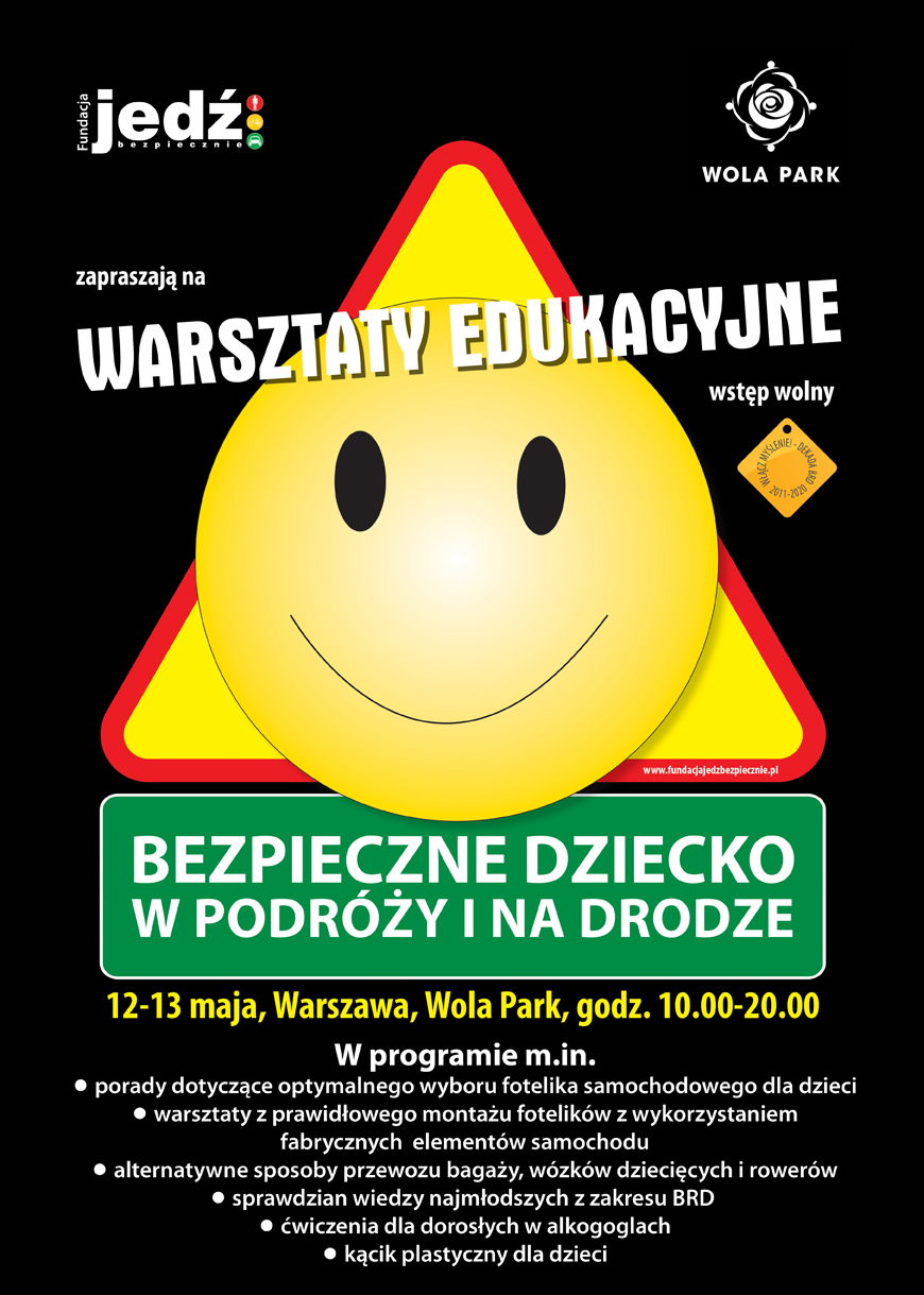 Organizowane przez Centrum Handlowe Wola Park I Fundację „Jedź Bezpiecznie” Warsztaty Edukacyjne „Bezpieczne dziecko w podróży i na drodze” są częścią ogólnopolskich działań́ w ramach Światowej Dekady BRD 2011-2020 cyklicznie prowadzonych przez Fundację (www.fundacjajedzbezpiecznie.pl).