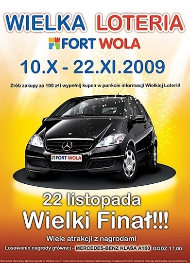 Od 10 października do 22 listopada 2009 roku Centrum Handlowe Fort Wola zaprasza do wzięcia udziału w ,,Wielkiej Loterii’’, w której główną nagrodą jest Mercedes Klasy A o wartości 69 000 zł !