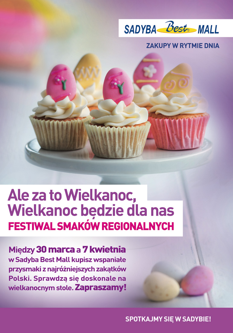 Wszystkich smakoszy tradycyjnej żywności serdecznie zapraszamy do Sadyba Best Mall przy ul. Powsińskiej 31 w dniach 30 marca – 7 kwietnia na Festiwal Smaków Regionalnych.