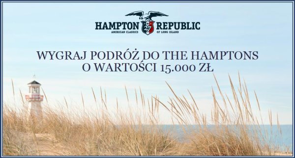 Pierwszą nagrodą jest Podróż do The Hamptons o wartości 15.000 zł. W ramach tej nagrody: lot tam i z powrotem do Nowego Jorku (JFK), wylot 3 czerwca, powrót 10 czerwca 2013 r., podróż pociągiem Nowy Jork-The Hamptons, zakwaterowanie na 6 nocy w pokoju dwuosobowym ze śniadaniem w The Mainstay B&B. Otrzymasz także wyjątkowy zestaw podróżny z ubraniami i akcesoriami z naszej kolekcji Hampton Republic 27. Marka zapewni także sprzęt potrzebny do przygotowania reportażu. Większość reporterów potrzebuje kogoś do pomocy, aby stworzyć udany reportaż, dlatego będziesz mogła/mógł zabrać ze sobą osobę towarzyszącą.