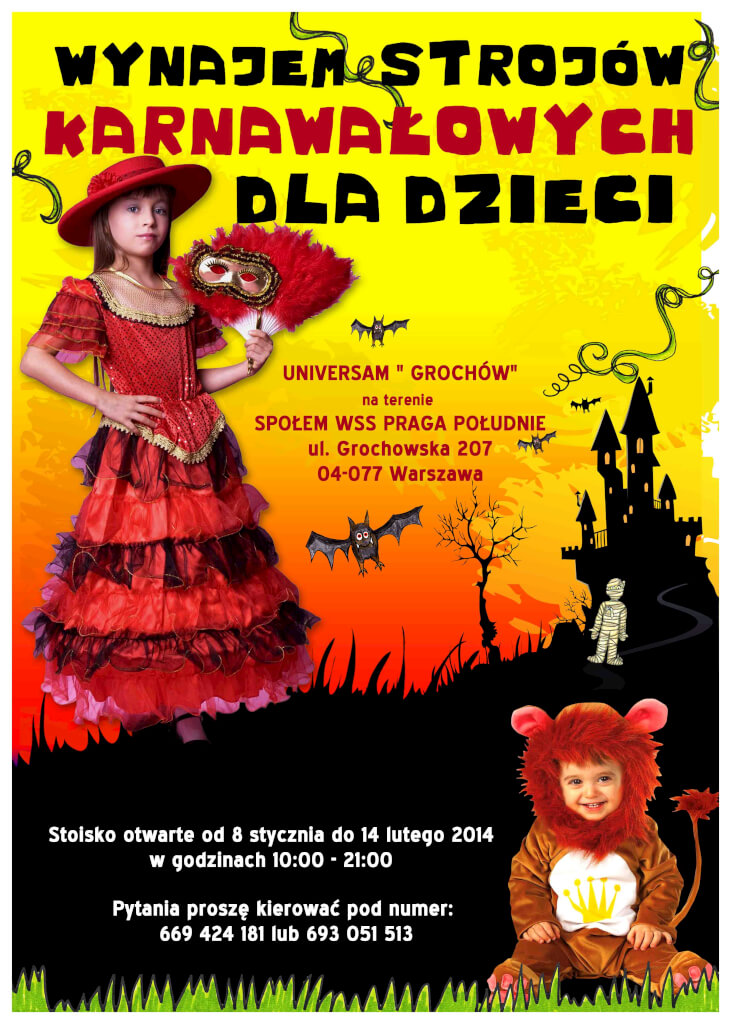 W tym roku wypożyczalnia została przeniesiona! W CENTRUM HANDLOWYM KING CROSS nie ma wypożyczalni strojów karnawałowych dla dzieci!!!