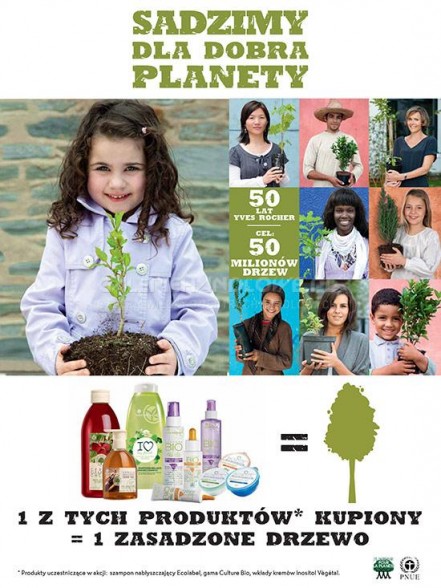 W ramach swojej międzynarodowej kampanii „Sadzimy dla dobra Planety”, której ambitnym celem jest posadzenie 50 milionów drzew na świecie do końca 2015 roku, marka Yves Rocher dzięki swojej fundacji oraz Fundacji Aeris Futuro zasadziła już 130 tys. drzew w samym sercu Polski.
