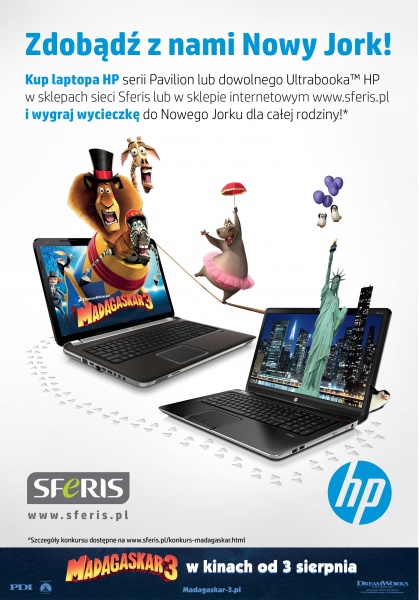 Każdy kto w terminie od 6 lipca do 10 sierpnia 2012 r. zakupi w sklepach sieci Sferis lub w sklepie internetowym Sferis.pl laptopa HP serii Pavilion lub dowolnego ultrabooka HP, zarejestruje się i odpowie na pytanie konkursowe weźmie udział w konkursie.