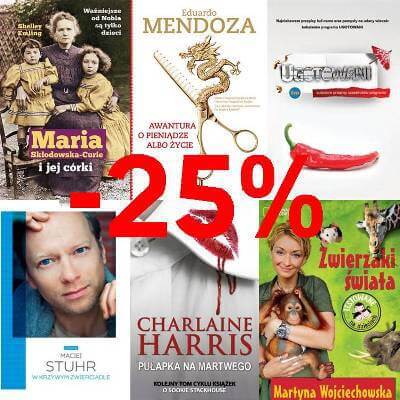 Promocja jest ważna w salonach oraz na stronie internetowej. Rabaty nie łączą się ze sobą. Zarówno Panie, jak i Panowie znajdą dla siebie ciekawe książki. Na półkach czekają propozycje od fantastyki, romansów, aż po książki dla dzieci.
