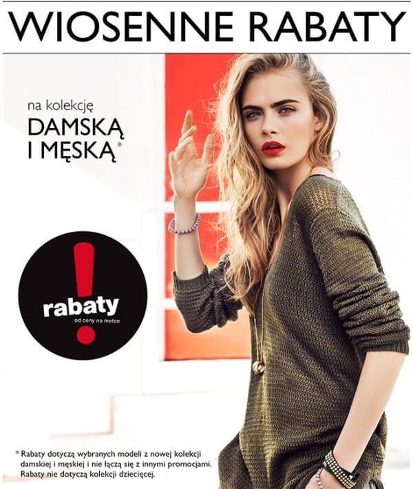 Rabaty dotyczą wybranych modeli z nowej kolekcji damskiej i męskiej i nie łączą się z innymi promocjami. Rabaty nie dotyczą kolekcji dziecięcej.