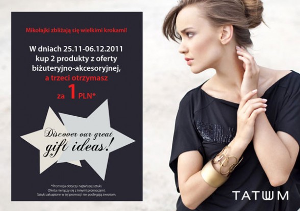 W dniach 25.11 – 06.12.2011 kup 2 produkty z oferty biżuteryjno – akcesoryjnej, a trzeci otrzymasz za 1 PLN!
