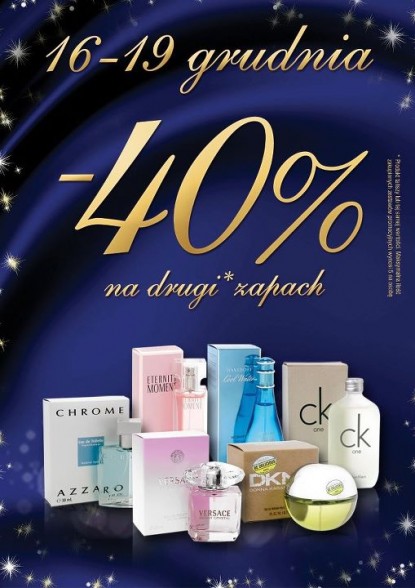 Kupując w dniach 16-19 grudnia perfumy w Super-Pharm możecie liczyć na wyjątkową okazję. Drugi zapach tańszy o 40% (promocja dotyczy tańszego zapachu i jest dostępna dla wszystkich klientów, także bez karty LifeStyle.