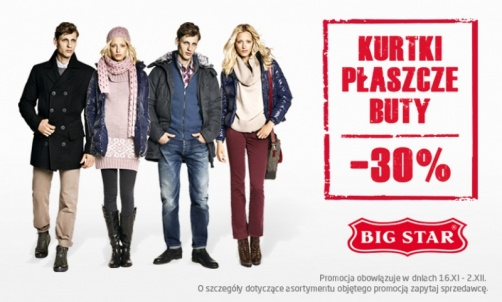 30% rabatu na kurtki, płaszcze i buty Big Star