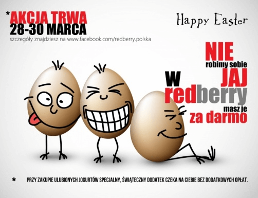 Kup swój ulubiony jogurt, a na hasło PISANKA jaja z pysznej czekolady, dostaniesz zupełnie za darmo. Dlaczego czekolada? Bo w niej znajduje się magnez, żelazo, witaminy i węglowodany proste, które są najłatwiej przyswajalnym źródłem energii dla człowieka.