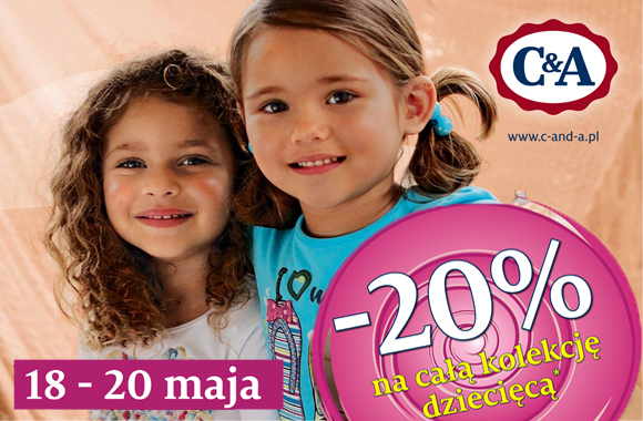 Od 18 do 20 maja we wszystkich sklepach stacjonarnych C&A rozpoczyna się promocja dla najmłodszych. Marka zaoferuje 20% rabatu na całą kolekcję dziecięcą.