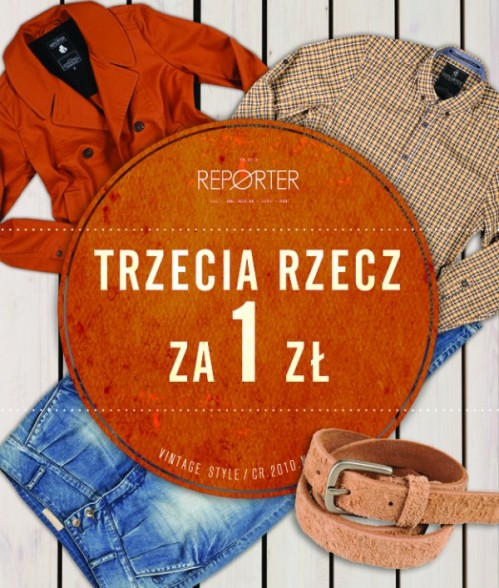 W sklepach Reporter cały czas możecie skorzystać z promocji ” 3 rzecz za 1 zł”. Tylko teraz kupując 3 sztuki z kolekcji jesień/zima oraz z najnowszych wiosennych propozycji marki Reporter, 3 rzecz kupicie za symboliczną złotówkę.