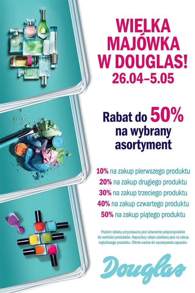W perfumeriach Douglas Wielka Majówka trwa w najlepsze! To niepowtarzalna okazja na uzupełnienie podróżnej kosmetyczki. Tylko do 5 maja możecie skorzystać z rabatu, aż do 50% na wybrane produkty. Koniecznie sprawdźcie szczegóły oferty w perfumeriach!