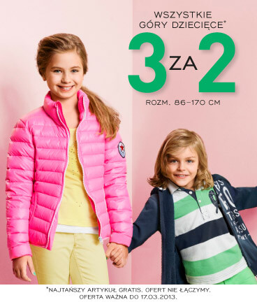 Do 17 marca wszystkie góry dziecięce w rozmiarze od 86 do 170 cm kupicie jeszcze taniej. Przy zakupie 3 produktów, jeden z nich, najtańszy, otrzymacie gratis!
