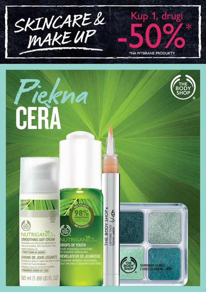 Sklepy The Body Shop zapraszają do skorzystania z nowej promocji. Teraz przy zakupie dwóch produktów z linii Skincare&Make up, na jeden z nich otrzymasz 50% rabatu.