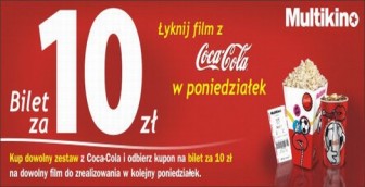 Łyknij film z Coca Cola w poniedziałek i zgarnij bilet do Multikina za jedyne 10 zł. Wystarczy kupić zestaw z Coca Cola i chodzić do kina w poniedziałki za 10 zł!