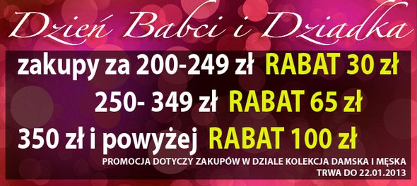 Promocja dotyczy zakupów w dziale kolekcja damska i męska. Oferta obowiązuje do 22 stycznia 2013 r.