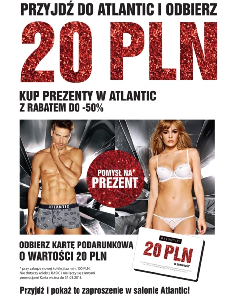Atlantic wie, jak zaskoczyć swoich Klientów przed świętami! Już teraz rozpoczęła się wielka wyprzedaż, której nie można przegapić! Kup prezenty z 50% rabatem i odbierz kartę podarunkową o wartości 20zł!