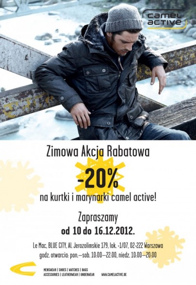 Tuż przed nadejściem astronomicznej zimy camel active ogłasza „Zimową Akcję Rabatową” w wybranych salonach, które oferują asortyment tej kultowej marki. Z 20% rabatu będą mogli skorzystać klienci sklepów w Białymstoku, Gdyni, Katowicach oraz w Warszawie.
