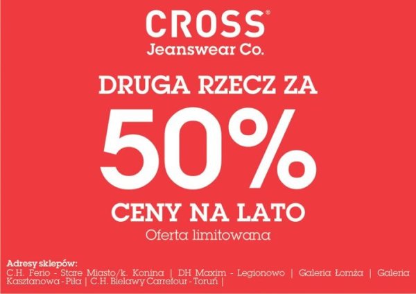 Druga rzecz za 50% ceny w Cross Jeanswear